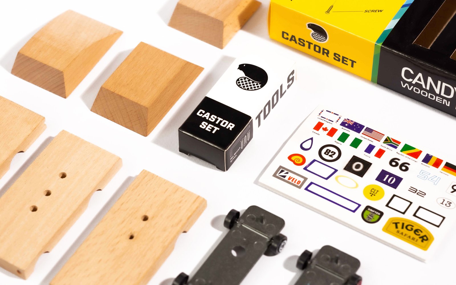 Design and build your own Candycar. With three types of cabins, three styles of wheel bases, and two body types, you have endless possibilities to customize your car. Get creative!