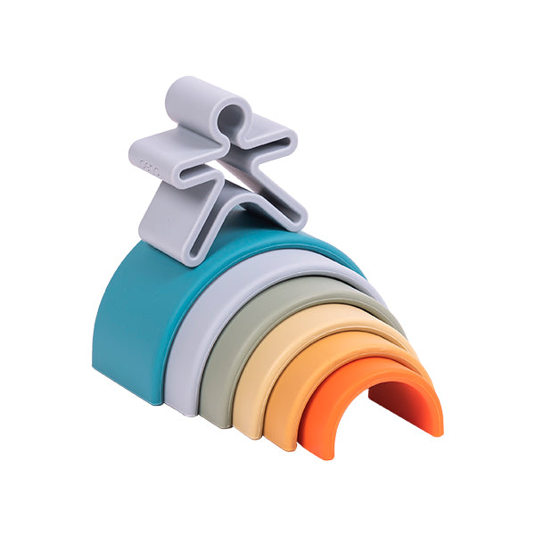 dëna has made it possible by reinventing the wonderful Waldorf Rainbow. Thanks to its design and its 100% safe silicone material, your little one can use it from a very young age (+0 m), adapting it to their evolutionary stage and their needs, from a teether to a baking mold.